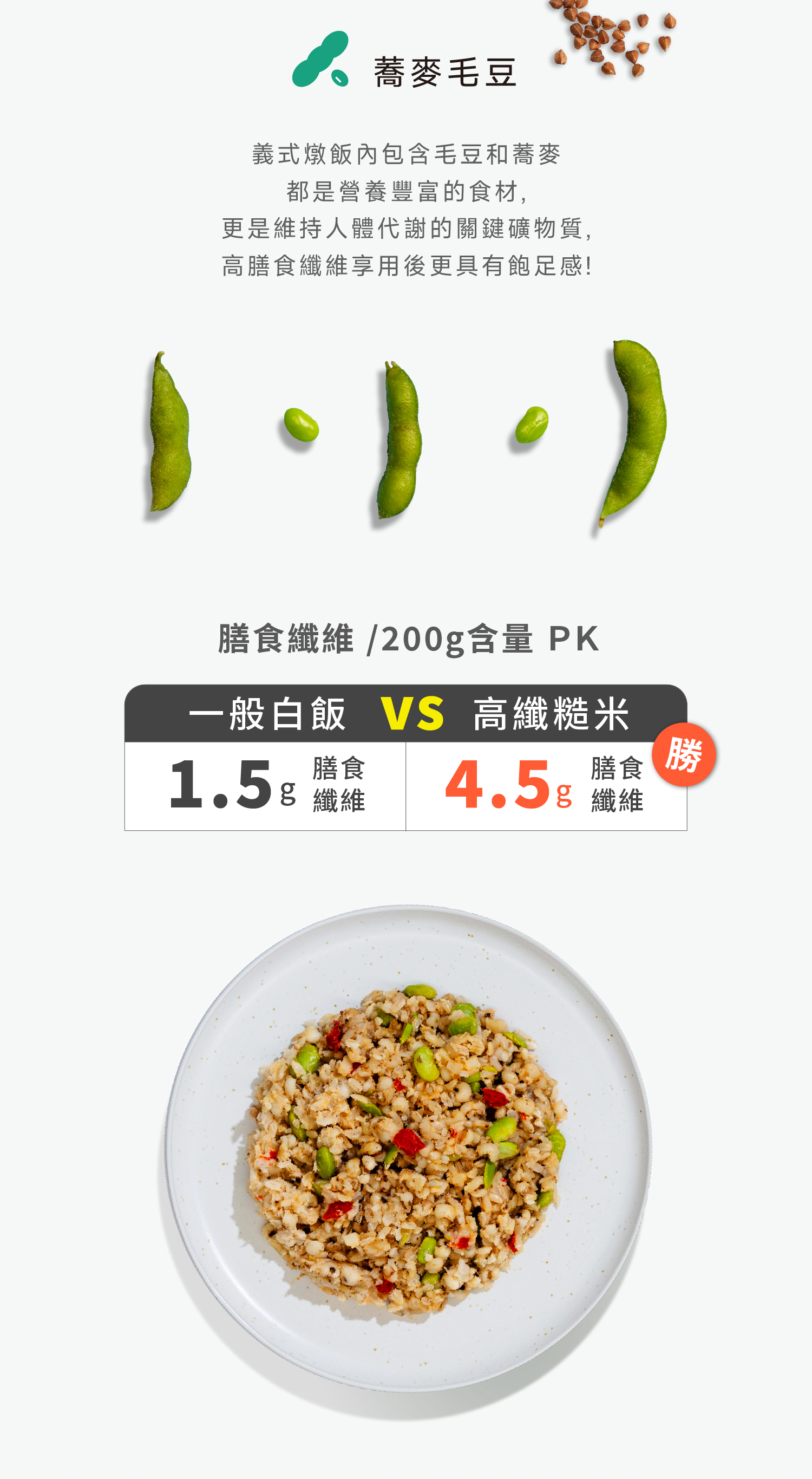 飯體嚴選真實食材天然調味,加入糙米、大薏仁等營養食材